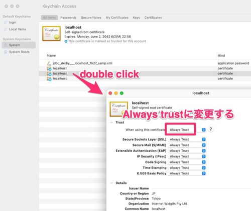↓こちらの記事の通りに証明書を作成して、Macのkeychain accessにimportし、selectboxを"Always trust"に変更するとChromeでもSSLでページが表示されました。ありがとうございます。 Vagrant上のUbuntu20.04サーバーにオレオレ証明書の発行局を開設 | うぇぶ…